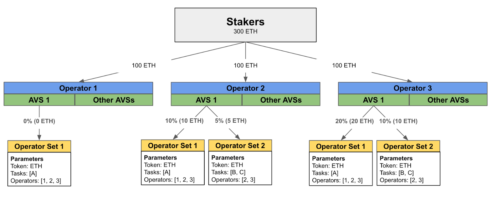- Greater control over slashing risk. The risk of slashing is isolated to the individual AVS and Operator Set, and Operators control how much of their stake any AVS can slash. AVSs are not exposed to risk from other AVSs or their slashings.